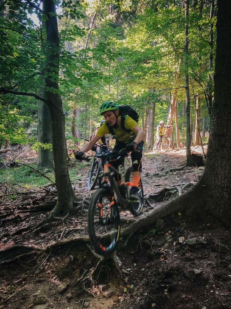 Szkolenie odbyło się więc na trasach Enduro Trails Bielsko-Biała i w bike parku w Szczyrku. Teraz krótka przerwa na czepialstwo. Po co wszystko teraz musi być “enduro”? Trasy enduro, szkolenie enduro. Rozumiem, że taka moda i że chwyt marketingowy, ale głowa już zaczyna boleć od tego wszędobylskiego enduro. Szkolenie „enduro” na trasach „enduro” z „enduro” według mojej definicji nie miało wiele wspólnego. Było to po prostu bardzo dobre szkolenie techniki jazdy na rowerze górskim i tyle. Alergie zaczynam mieć na “enduro”.